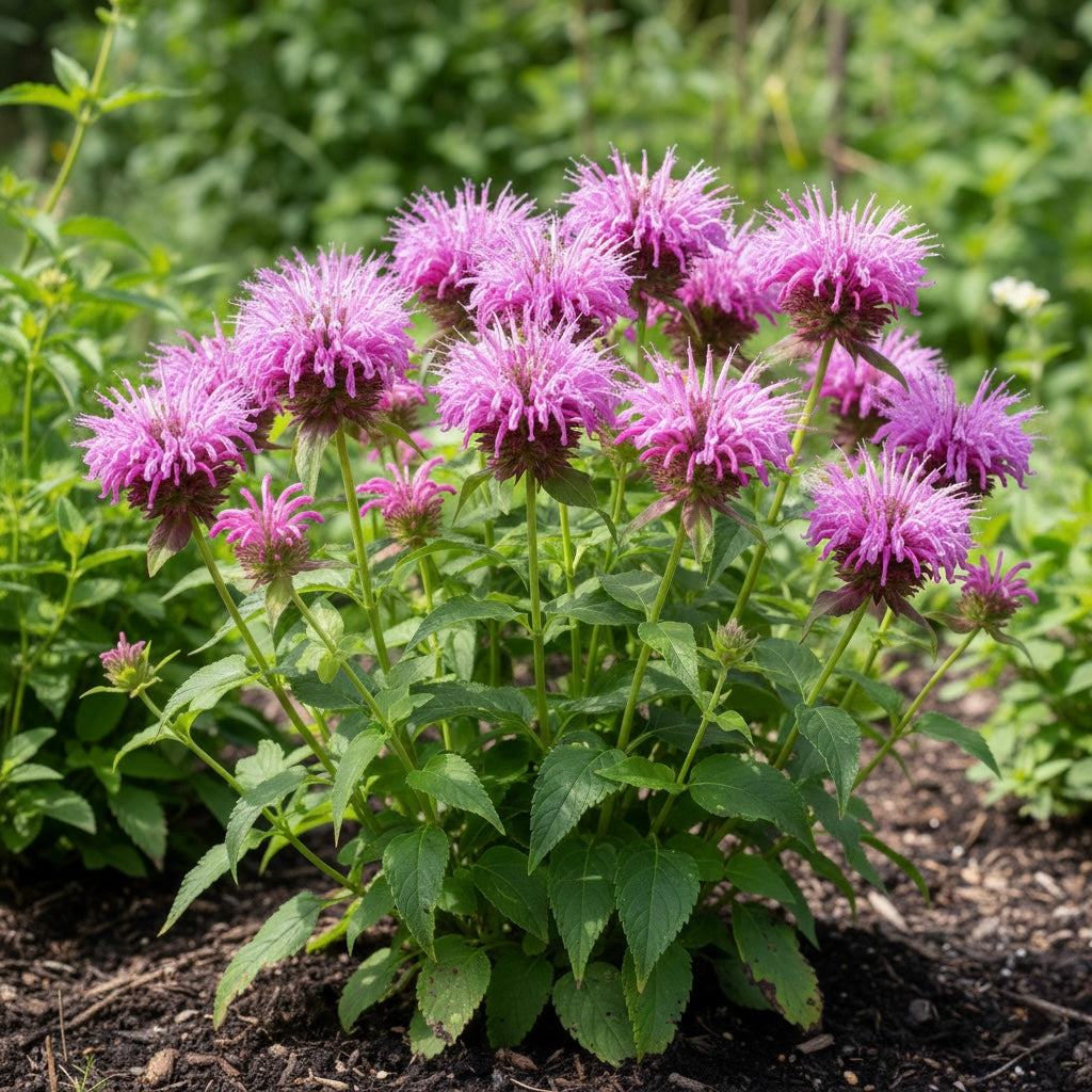 Bee balm has a long history of medicinal use. Traditionally, the leaves and flowers were used for teas to support digestion, soothe sore throats, and promote overall wellness. The plant contains thymol, a natural compound with antiseptic properties, and is also commonly used in herbal and aromatic preparations.