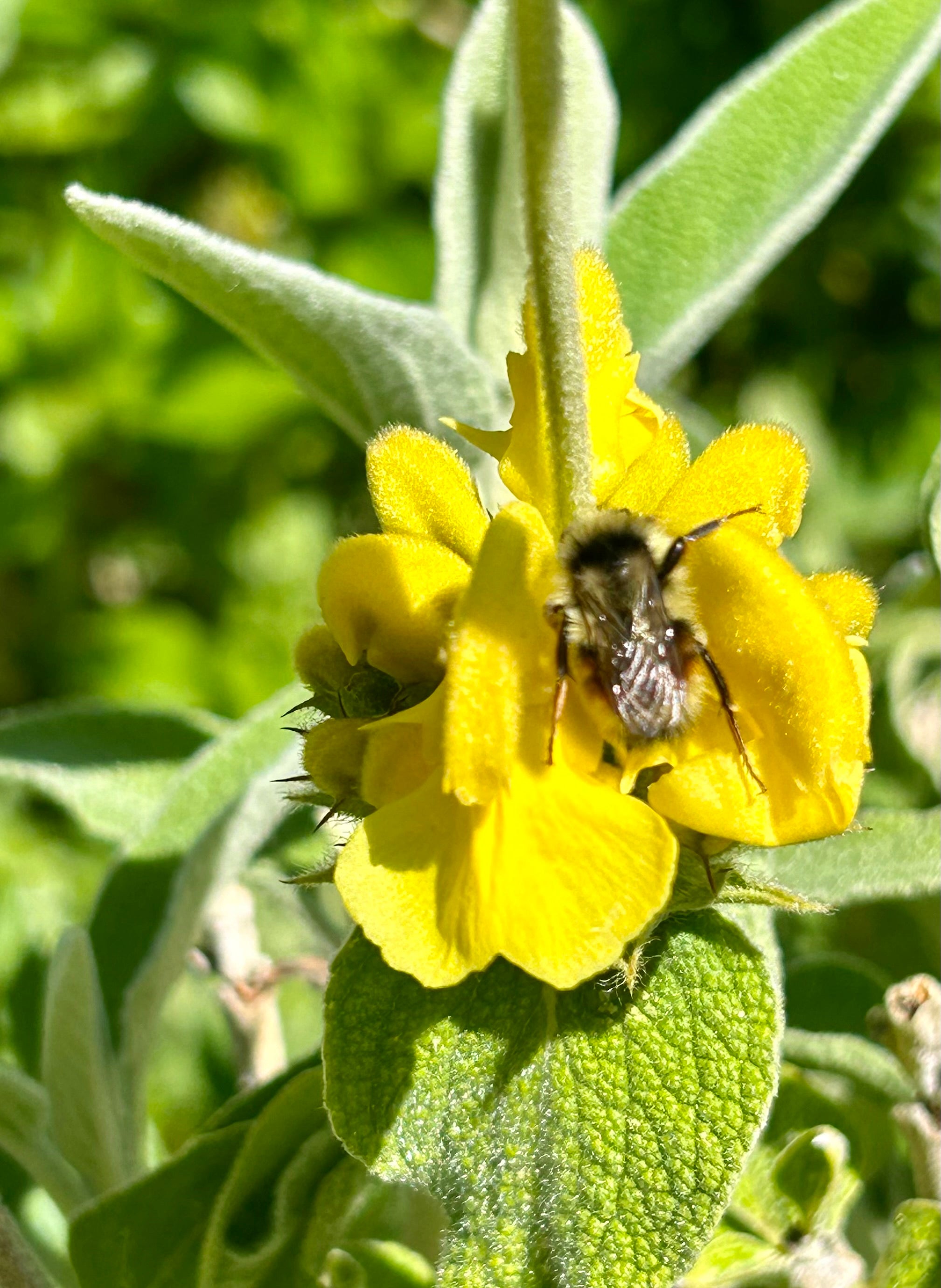 Commonly known as Hardy Jerusalem Sage and features fantastic whorled clusters of yellow hooded flowers on tall erect hairy stems and has interesting large heart shaped olive green leaves. Blooms early to the late summer. Winter foliage is very different - but equally striking! It produces the largest seed pods when well-watered throughout its blooming period in June, and reproduces at a moderate rate by way of runners which are quite thick and break off rather easily, which makes it easy to keep it from spreading and to propagate it.