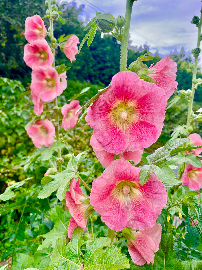 Hollyhock – Lynda’s Apricot & Pink Hollyhocks (Alcea rosea) Non-GMO – Organically Grown – Flower - Single Blooms