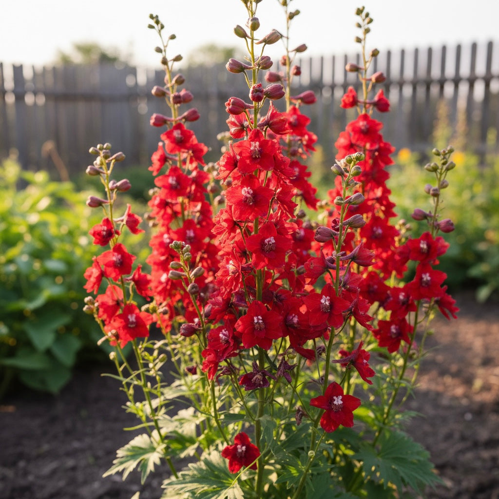 Larkspur – Scarlet Spire Larkspur (Delphinium consolida ‘Scarlet Spire’) Non-GMO – Organically Grown – Flower