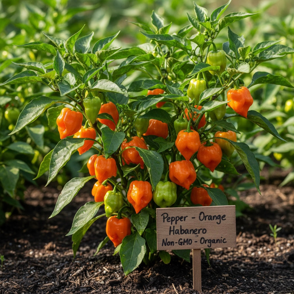 Pepper - Orange Habanero Hot Pepper (Capsicum chinense) Non-GMO - Organically Grown - Vegetable