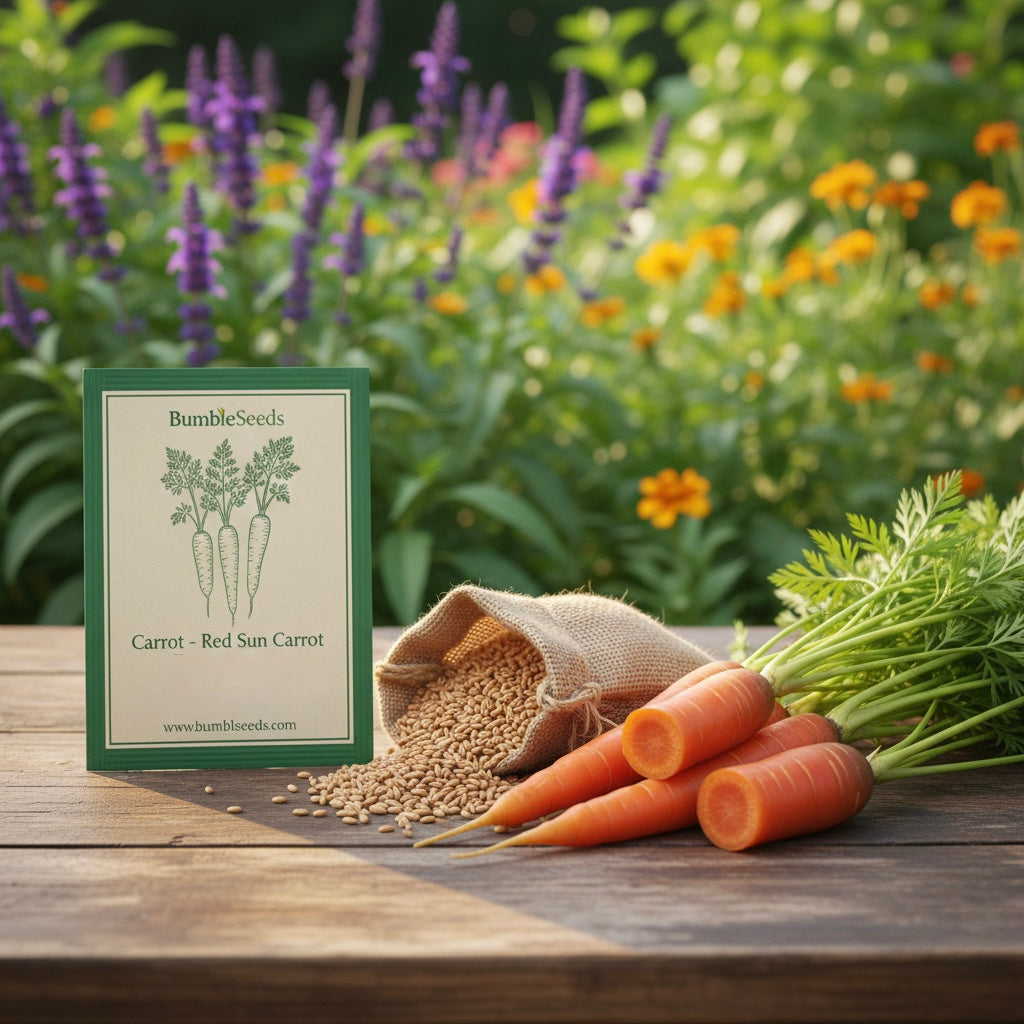 Red Sun Carrot is a vibrant, sweet heirloom variety with deep red-orange roots and crisp, tender texture. Its rich color makes it a beautiful addition to salads, roasting, and fresh snacking. Packed with beta-carotene, vitamins A and K, and antioxidants, it supports eye health, immunity, and overall wellness. While not considered a medicinal herb, carrots are known for their antioxidant properties and general health benefits.
