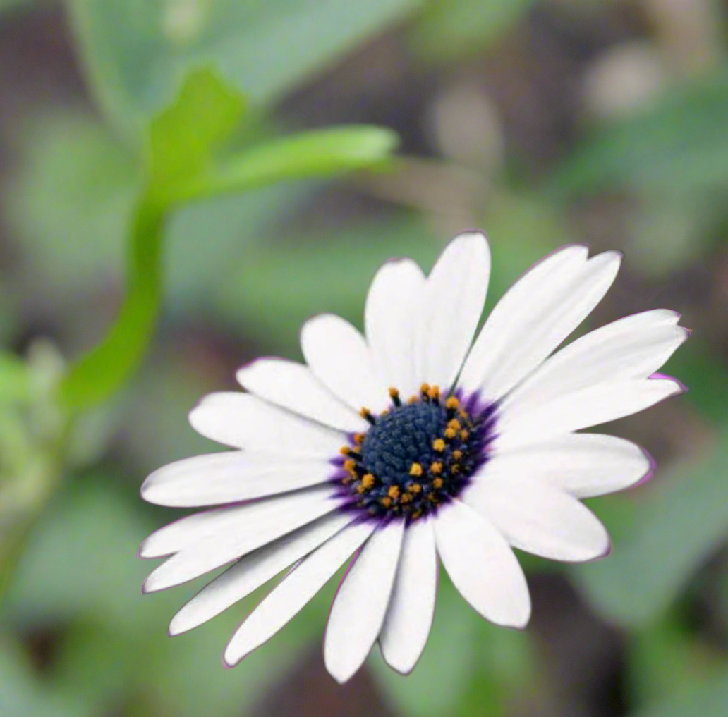 This variety, Osteospermum ecklonis, is a hybrid. We chose this variety due to the popularity of the white petals. Flowers are fairly low-maintenance and deadheading promotes continuous blooms. The beautiful flowers open their petals when the sunlight hits them and reveals a dark center ringed with purple that is highly attractive to bees and butterflies. Petals are edible with a slightly bitter, citrusy/spice flavor.