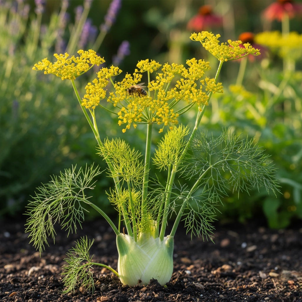 Green Fennel (Foeniculum vulgare) is a fragrant, feathery-leaved culinary and medicinal herb known for its sweet, anise-like aroma and soft, airy texture in the garden. It produces tall, graceful stems topped with golden umbels that attract beneficial pollinators throughout the growing season. The leaves, stems, seeds, and pollen are all edible, and the plant is widely valued for digestive support, calming properties, and traditional herbal uses. When grown and harvested young, it offers a delicate, mild licorice flavor perfect for teas, seasoning, salads, roasted dishes, and herbal blends. Green Fennel is easy to grow, fast to mature, and adds both ornamental beauty and practical usefulness to herb gardens, cottage gardens, and culinary plantings.